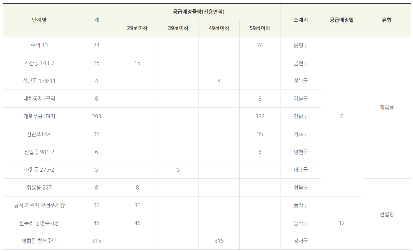 서울시 다양한 자치구에 행복주택을 공급하여 위치적 편리성을 제공하고 있으며 서울시민의 다양한 주거니즈를 충족